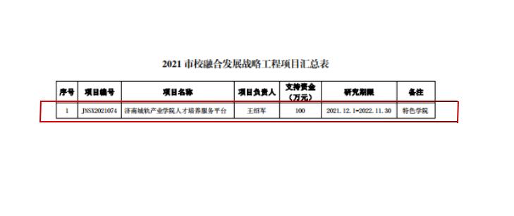 近日,学校“城轨产业学院人才培养服务平台”立项2021年市校融合发展战略工程项目。