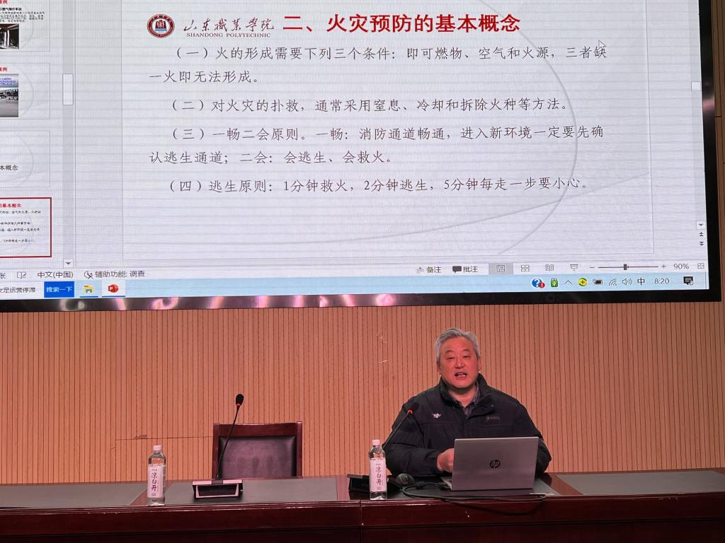 为进一步强化食堂从业人员安全意识,普及消防安全和燃气使用安全知识,提高火险应急处置能力。2月19日,我校在图书行政楼东报告厅组织开展了消防知识及燃气安全使用培训。培训由总务处副处长丛树胜主持,食堂从业人员200余人参加。