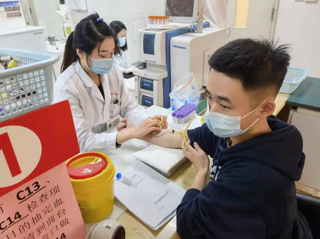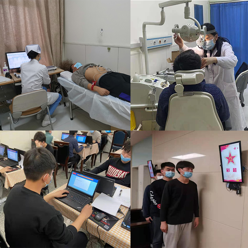 应征学生集中进站前,逐一检测体温、全程佩戴口罩,分组分批次进行体格检查。春季征兵体检主要包括五官科、口腔科、血压、内科、外科、心理检测和HIV检测(艾滋病)等项目的检查。体检过程中,同学们讲文明、守秩序、有纪律,耐心地逐项进行检查。