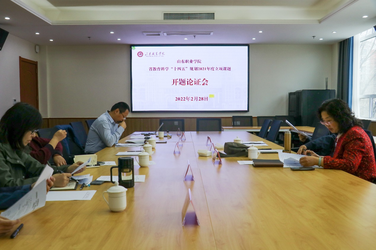 2月28日上午,我校在南楼二楼会议室举行省教育科学“十四五”规划2021年度课题开题论证会,邀请到山东农业大学王汉忠教授、山东商业职业技术学院徐红教授、山东旅游职业学院杨秀冬教授担任评议专家。副院长祝瑞花出席论证会,课题组成员及学校科研管理人员参加会议。