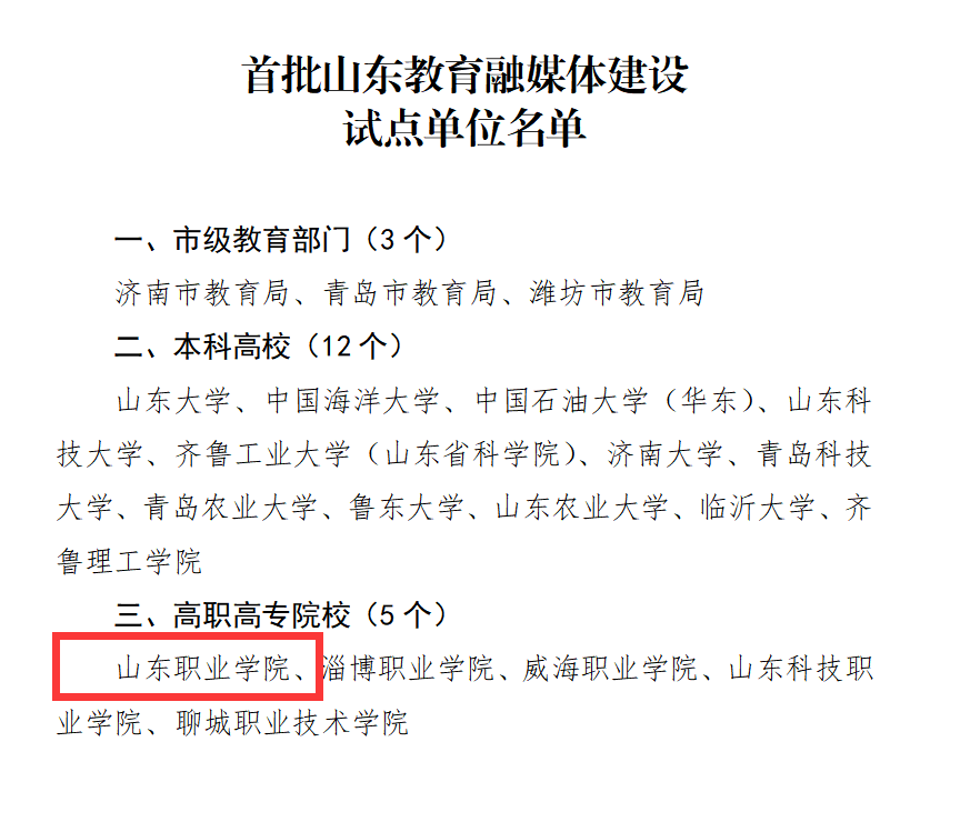 5月5日,山东省教育厅印发了《关于公布首批山东教育融媒体建设试点单位名单的通知》,公布了首批山东教育融媒体建设试点单位名单,我校成功赫然在列。