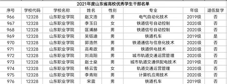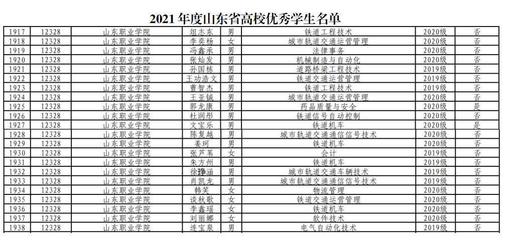 近日,山东省教育厅公示了2021年度高等学校优秀学生、优秀学生干部和先进班集体名单。我校22名同学被评为省高校优秀学生,11名同学被评为省高校优秀学生干部,2个班级被评为省高校先进班集体。