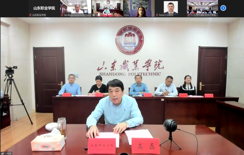 在随后的发言中,高磊介绍了山东职业学院的基本情况,表达了学校对此次四方合作的高度重视和对四方实现强强联合的美好愿景。高磊表示,作为合作一方,学校将积极履行合作协议,秉持“友好、互助、共进”原则,推动老挝系统化的轨道交通职业教育体系建设,推动人才培养、师资培训、技能竞赛、人文交流等合作领域向前迈进,与各方共同促进职业教育发展和中老友谊进步。
