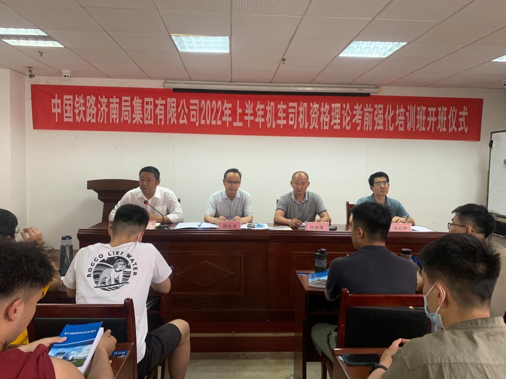 6月8日下午,中国铁路济南局集团有限公司2022年上半年机车司机资格理论考前强化培训,在我校解放路校区举行了开班仪式。济南局机务处高工韩长虎、济南机务段科长吴献伟、济南培训中心科长赵延卿,我校继续教育学院院长孙洪涛出席仪式。铁路局带队老师及110名学员参加仪式。开班仪式由吴献伟主持。