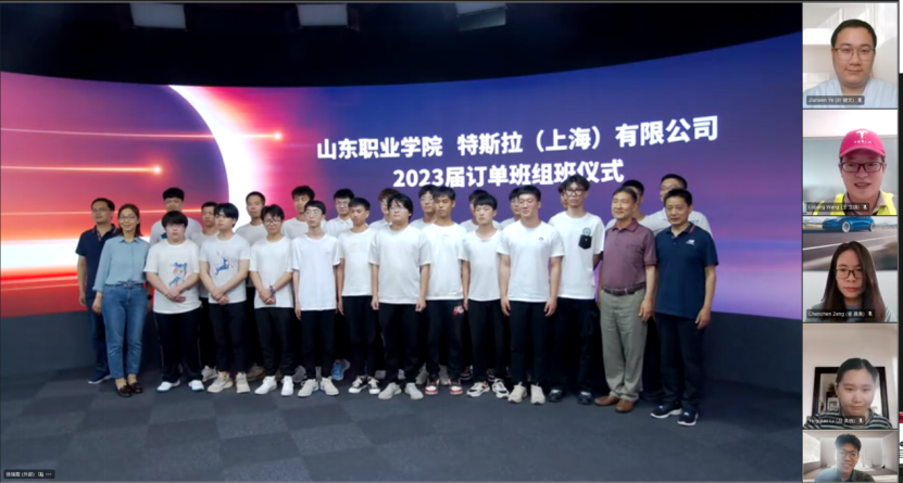 6月8日下午,我校与特斯拉(上海)有限公司在云端举行了2023届订单班开班仪式。副院长王绍军、特斯拉(上海)有限公司设备经理王立强出席开班仪式,校企双方项目组成员、特斯拉订单班全体学生参加开班仪式。