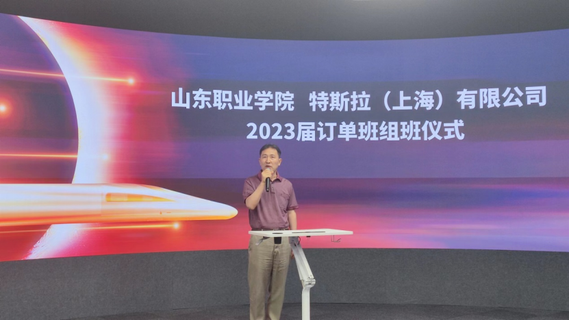 王绍军首先回顾了特斯拉订单班的组建过程,充分肯定了在疫情形势下校企双方为订单班的顺利开班所做出的努力,并勉励同学们珍惜这次难得的机会,努力学习,在校企双方的共同培养下,成长为一名高素质技术技能人才。