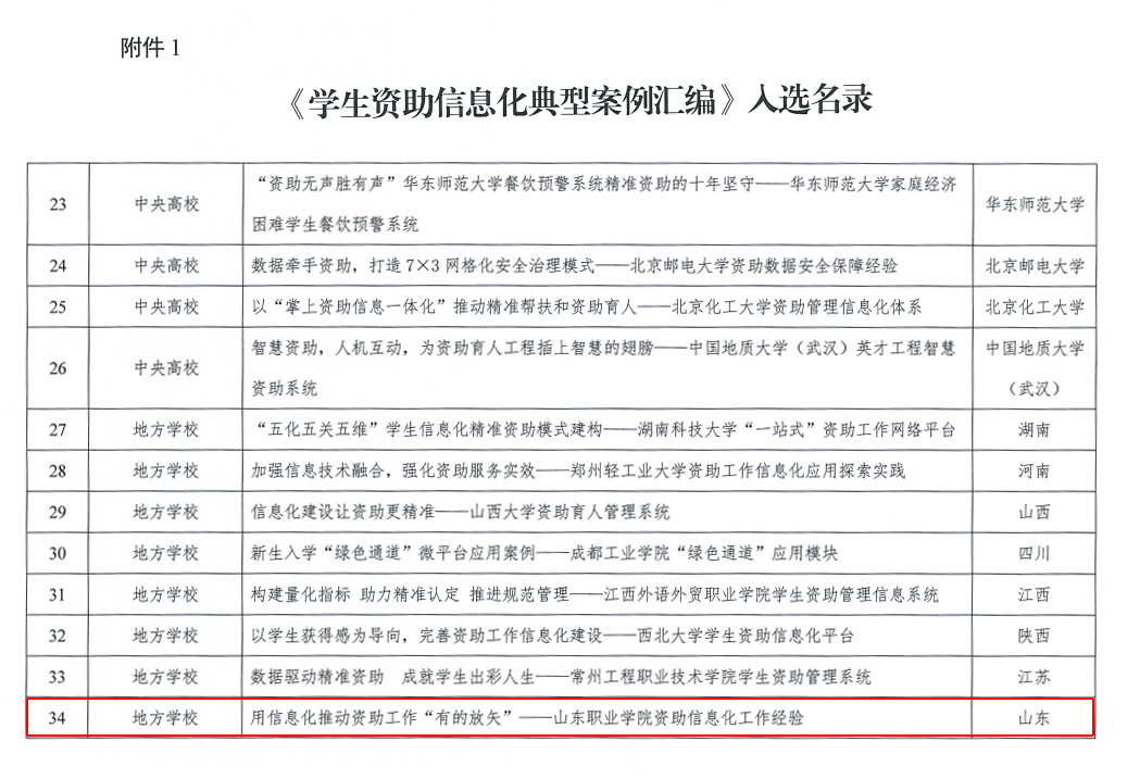 近日,教育部全国学生资助管理中心下发《关于印发<学生资助信息化工作典型案例汇编>与公布首批学生资助信息化工作专家库入选专家的通知》(教助中心〔