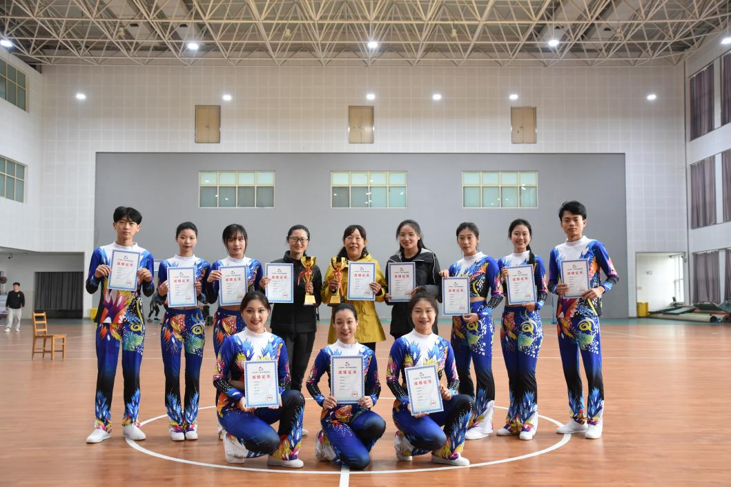 为取得优异成绩,我校积极部署,由体育教学部主任国翠香担任领队,教师赵莹、毕天琦带领参赛队员全力以赴,积极备赛。我校共有9名同学参赛,经过激烈角逐,分别获得傣族健身操、啦啦操规定套路一等奖第一名。国翠香、赵莹获优秀指导教师。