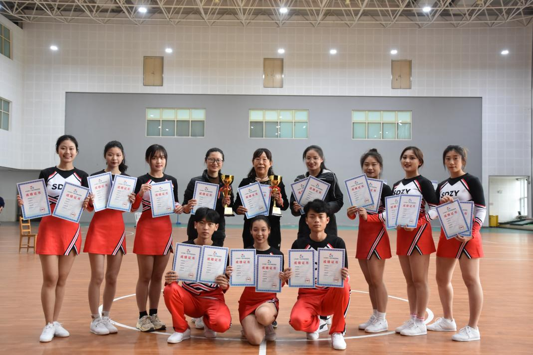 10月13日至14日,山东省第十二届全民健身运动会在青岛举办,我校参加了全民健身操舞和时尚青岛啦啦操两个比赛的角逐,均获得一等奖第一名。