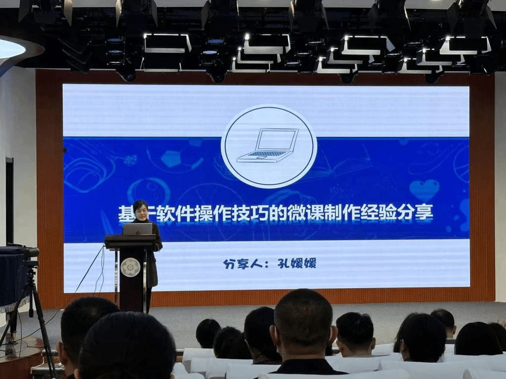 孔媛媛以《基于软件操作技巧的微课制作》为题做了经验分享。她从如何快速制作微课、怎样制作片头片尾及如何制作手绘视频等方面分享了自己的心得体会。同时,借用剪辑软件界面现场授课,充分展现了如何使在线课堂在教授知识的同时变得生动有趣。