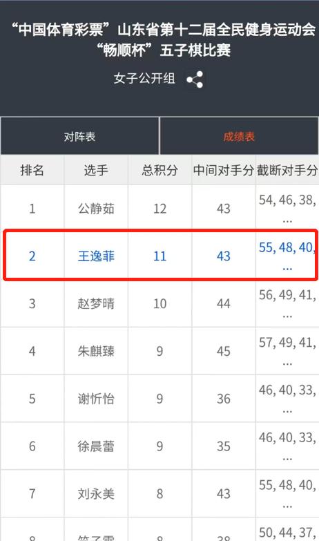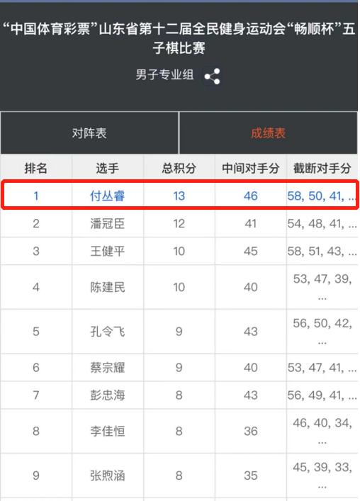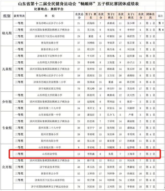 1月14日,“中国体育彩票”山东省第十二届全民健身运动会“畅顺杯”五子棋比赛圆满落下帷幕。我校付丛睿同学荣获男子专业组冠军,王逸菲同学荣获女子公开组亚军,学校取得团体第二名的好成绩。