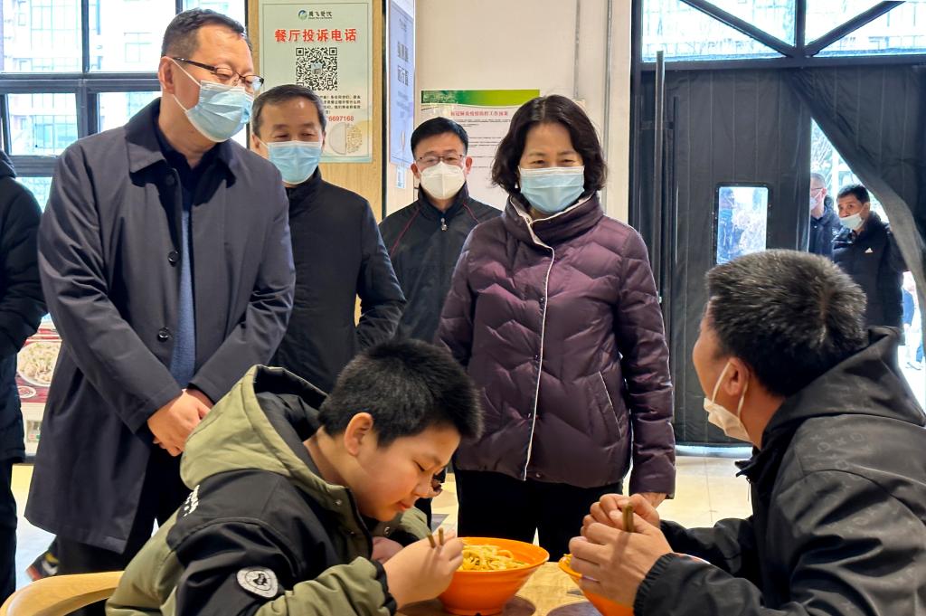 深入学生宿舍和餐厅,看望慰问返校学生,与学生进行亲切交谈,了解学生假期学习生活情况,并勉励同学们铆足干劲、继续奋斗,以更加饱满的精神状态投入到新学期学习生活中去。