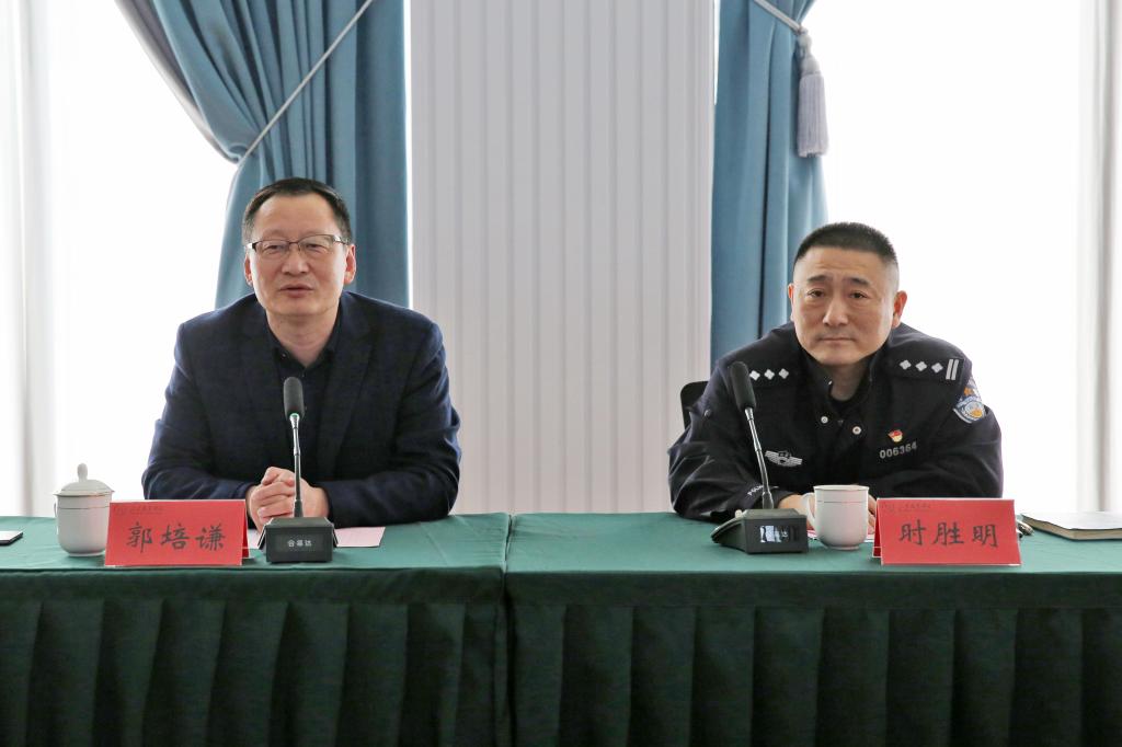 郭培谦对大家的到来表示热烈欢迎,向济南市公安局高新区分局和辖区派出所对学校安全工作的大力支持表示感谢。简要介绍了学校的办学历史、办学现状和取得的主要成绩。他指出,学校党委高度重视安全工作,牢固树立大安全观意识,统筹各部门抓好意识形态、网络安全、疫情防控、消防安全、食品和饮用水安全、国有资产、实验实训等方面的安全,通过“四个一肩挑”机制,压紧压实安全责任。他强调,做好安全工作要牢记“六常”理念,即“经常念”“钟常敲”“堤常筑”“气常通”“情常生”“案常练”,着力推动各项安全工作落地落细落实。
