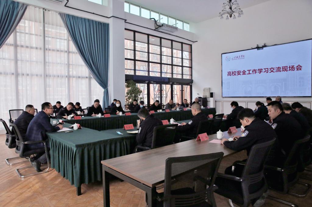 3月8日下午,济南市高新区高校安全工作学习交流现场会在我校5号教学楼一楼会议室召开。高新区公安分局治安大队副大队长时胜明、巨野河派出所所长张海安、临港派出所副所长闻军、孙村派出所警官翟鹏,山东英才学院、山东现代学院、山东协和学院、山东公路技师学院、济南技师学院等有关处室主要负责同志等出席会议,院长郭培谦陪同并致辞。学校安全保卫处、学生工作处有关负责同志就校园安保和学生管理工作经验做法作交流发言。