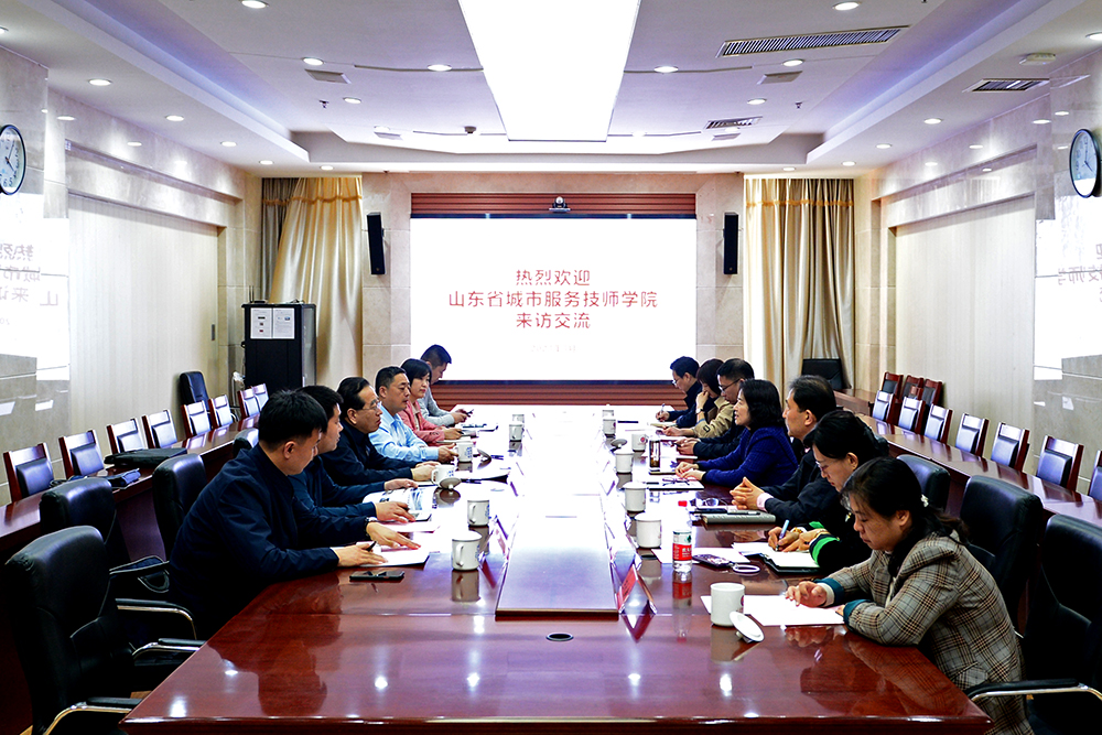 3月31日,山东省城市服务技师学院党委书记宋宁一行6人到我校交流访问,党委书记赵凤文出席会见。