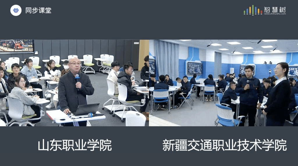 “同步课堂”中,蒋东明充分利用全景教室资源和智慧树平台提供的在线签到、在线随机提问、弹幕、翻转课堂等功能,将信息化背景下全新的教学方法和教学手段运用到“同步课堂”的实践操作中,充分调动两校学生的学习积极性和主动性,取得了良好的课堂效果。