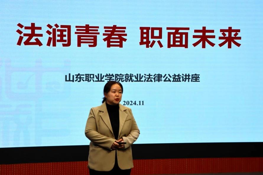 为进一步加强校园法治教育,增强同学们的法律意识和法治观念,助力职业法治教育发展,11月21日,我校在三号教学楼音乐厅开展了“法润青春,职面未来”普法宣讲活动,活动邀请山东中敬城(起步区)律师事务所律师李婷担任主讲,2022级同学参加。