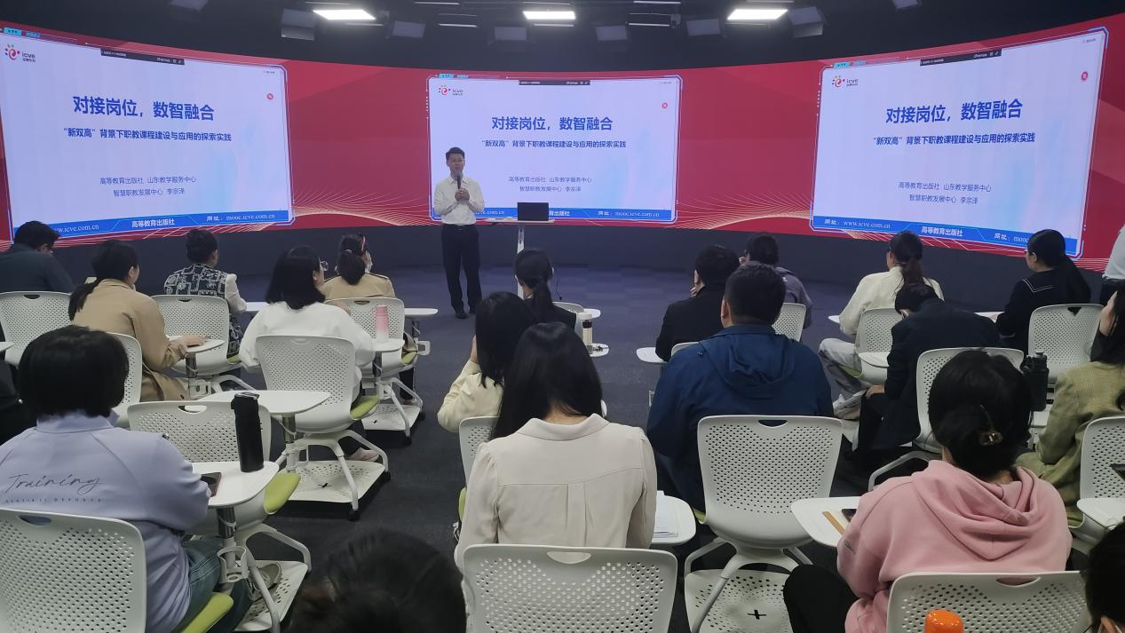 为提升教师课程及教材建设能力,加强学校内涵建设,5月8日下午,我校在四号教学楼全景教室举办课程、教材建设及智慧教育平台应用培训讲座。高等教育出版社山东教学服务中心、智慧职教发展中心主任李宗泽和高职出版事业部工科分社分社长曹雪伟来校作专题讲座。讲座由教务处副处长曹竣凯主持。