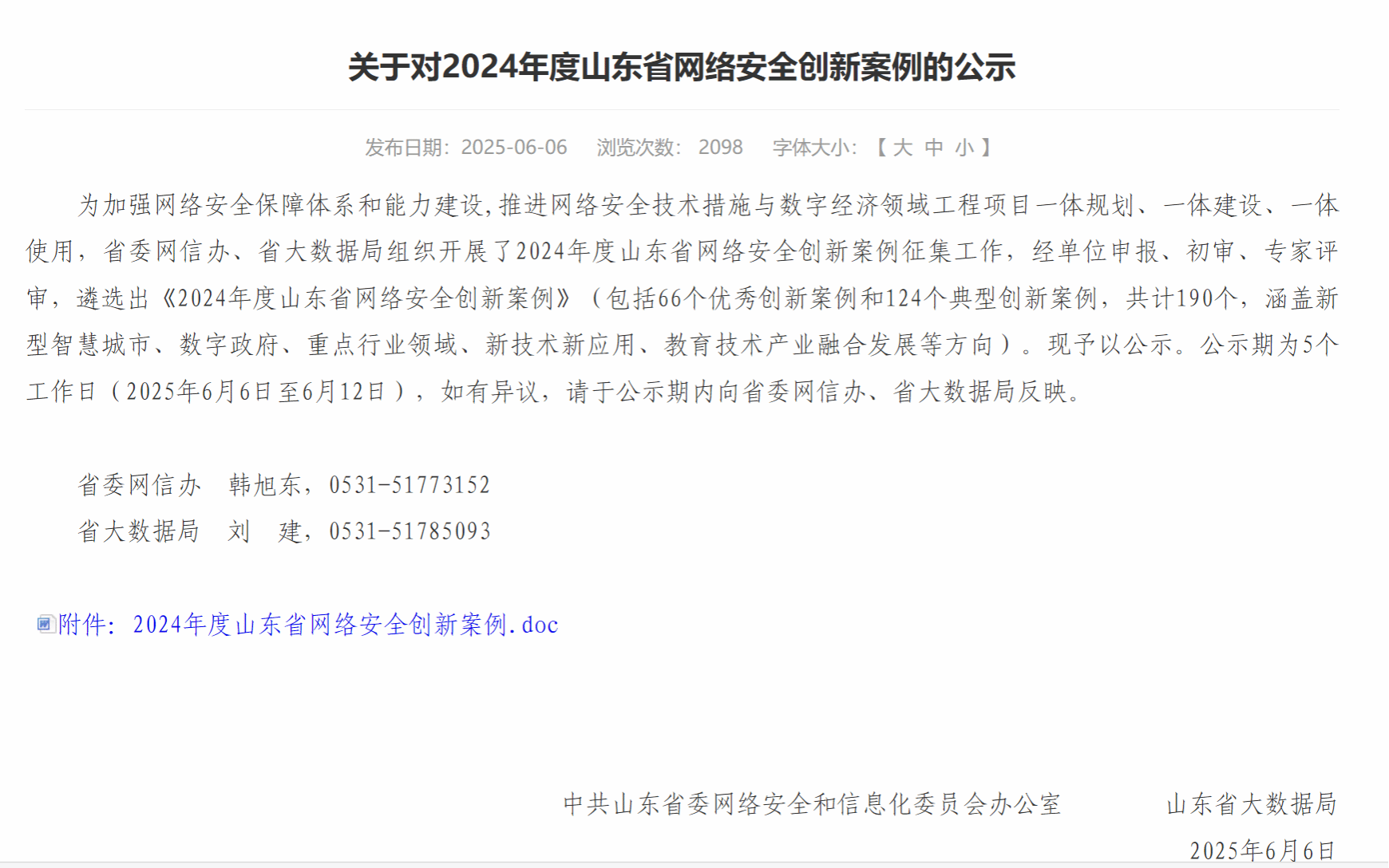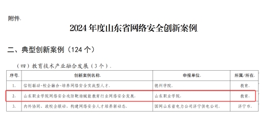 近日,山东省委网信办、省大数据局公示《2024年度山东省网络安全创新案例》名单,我校“网络安全攻防靶场赋能教育行业网络安全发展”案例成功入选典型创新案例(教育技术产业融合发展领域)。