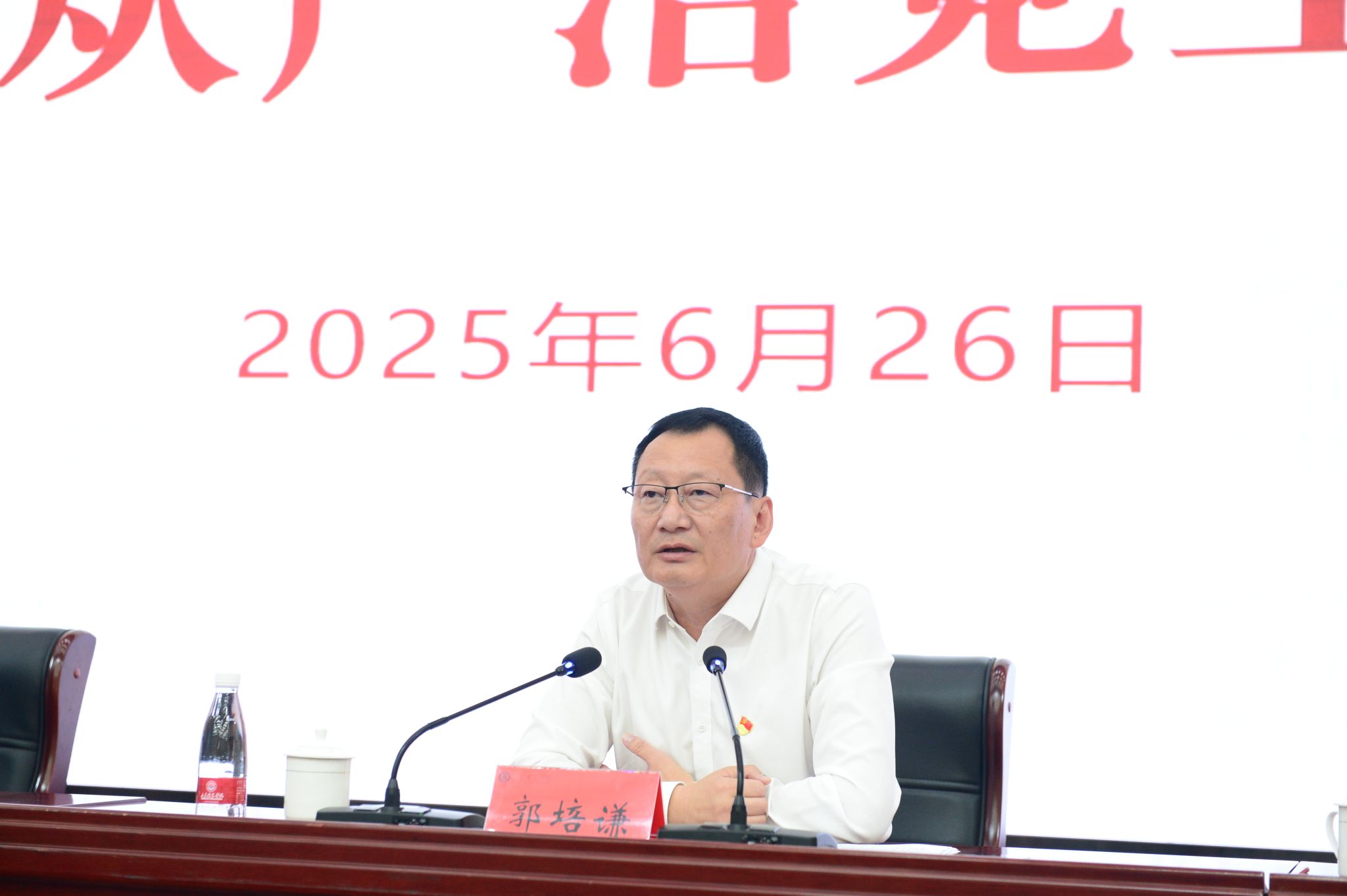 6月26日,我校召开2025年庆“七一”表彰暨全面从严治党工作会议,表彰一年来在学校党的建设工作中涌现出的先进集体和优秀个人,回顾总结学校2024年度全面从严治党工作,部署安排2025年重点任务。党委书记赵凤文出席会议并讲话,会议由院长郭培谦主持。