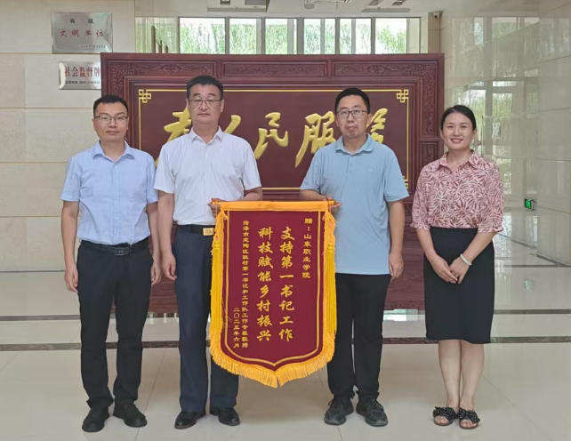 近日,我校收到了一面来自菏泽市定陶区驻村第一书记和工作队工作专班的锦旗。专班对我校派驻黄店镇西台集村第一书记苑若斌及后方团队的辛勤付出给予高度评价,称赞他们以“职教之力”激活了乡村“一池春水”,为定陶乡村振兴贡献了“山职智慧”和“山职方案”。