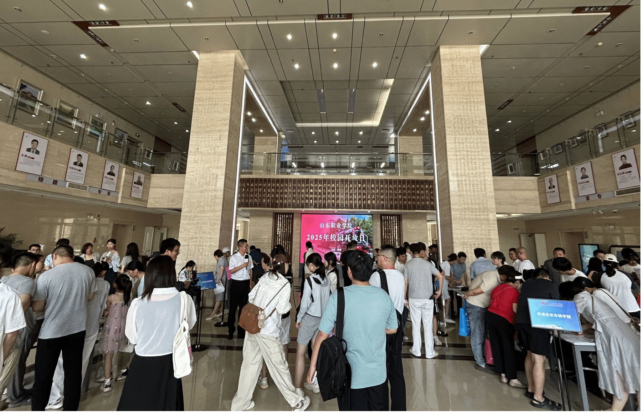 答疑环节进行的同时,我校8个二级学院在图书行政楼一楼大厅设置展位。各学院院长、招生老师及学生志愿者为考生和家长提供了最全面、最专业的面对面咨询服务,助力他们深入了解各专业特色与发展前景。齐鲁晚报·齐鲁壹点“老徐话高招”栏目进行了现场采访并全程直播。