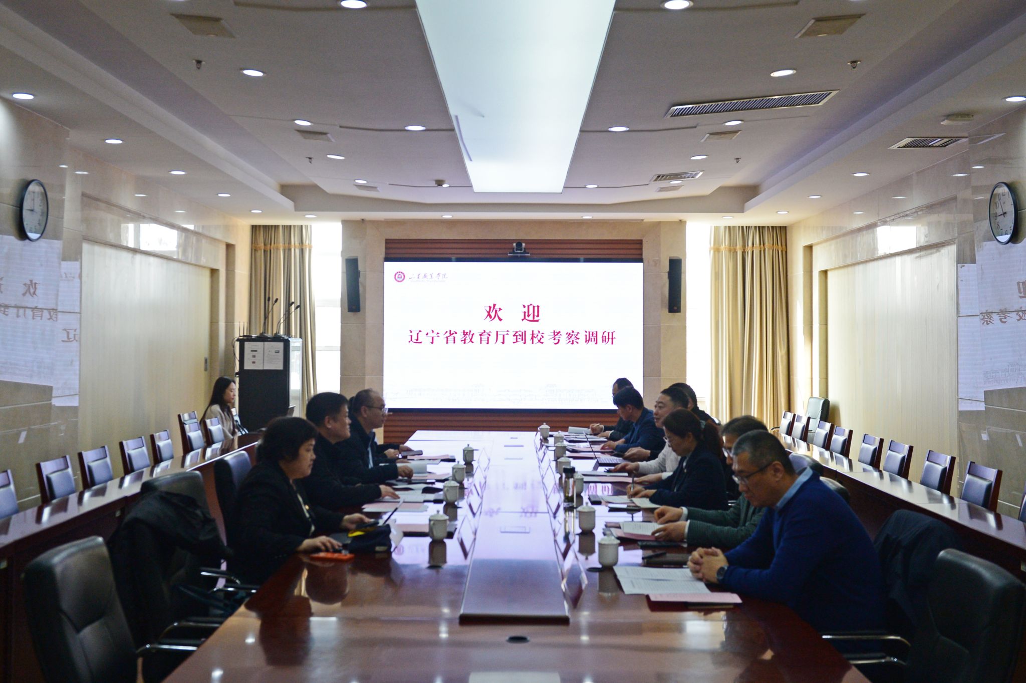 3月9日,辽宁省教育厅职业教育与成人教育处处长苏云海率队到我校考察调研,山东省教育厅职业教育处处长陈志浩,我校党委书记赵凤文、院长郭培谦出席会见。