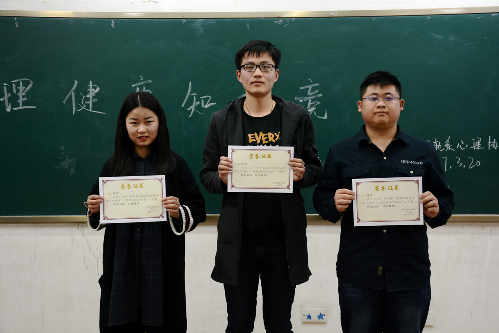 为宣传普及心理健康知识,近日,城市轨道交通系组织开展了心理健康知识竞赛。竞赛中,王建飞同学表现突出,他认为,健康的心理是大学生将来走向社会,在工作岗位上发挥智力水平、积极从事社会活动和不断向更高层次发展的重要条件,希望大家能根据具体情况及时对心理状态进行调整。同时,他提出的针对大学生心理问题的解决方法也受到了在场评委的一致好评。经过角逐,最终城市轨道车辆技术1634班王建飞、城市轨道交通机电技术1631班林作洲、城市轨道交通运营管理1632班蒋杰三位同学分别荣获一等奖、二等奖、三等奖。