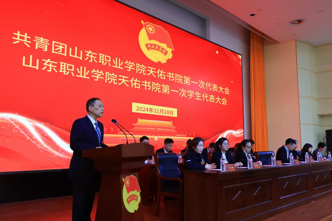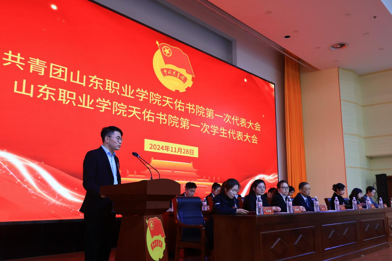 笃行不怠启新程,青春聚力谱华章。11月28日,共青团山东职业学院天佑书院第一次代表大会、山东职业学院天佑书院第一次学生代表大会在图书行政楼西报告厅召开。天佑书院党总支书记、院长王宁,学校团委副书记王成琳,天佑书院副院长杨硕以及天佑书院全体辅导员和112名学生代表出席本次会议。