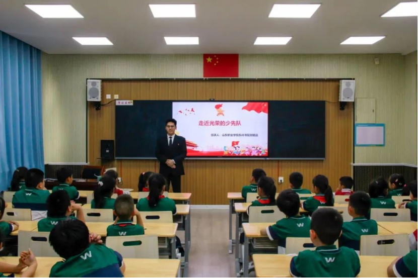 5月29日,东岭书院志愿服务队赴山东省济南市历城区鸡山小学开展了主题为“东岭青衿承薪火,少年意气筑星河”的中国少年先锋队知识普及活动,书院部分志愿者参加。