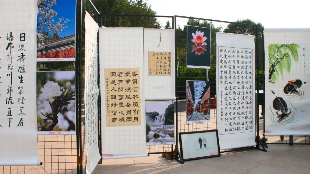 下午,在喷泉广场举行了“岁月凝墨彩,青春共华章”书画艺术展,吸引了众多师生前来欣赏观看。此次展览以退休老干部书画作品为主,不仅展现了中华传统文化的独特魅力,更让年轻一代感受到了老前辈们对祖国的深深热爱和对美好生活的不懈追求,向青年们展现了昂扬向上的奋斗姿态。