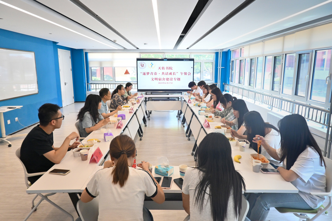 为持续深化“以学生为中心”的服务育人理念,加强书院师生交流协作,共创和谐温馨的书院生活环境。6月17日,天佑书院开展“院长面对面”升级版——“逐梦青春,共话成长”主题午餐会。院长王宁、副院长杨硕以及书院辅导员出席午餐会。