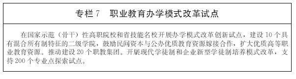 创新人才培养模式。坚持产教融合、校企合作,突出学生实践能力培养,促进学生全面发展。深化校企协同育人,积极推进订单培养、现代学徒制试点。全面推进学历证书与职业资格证书“双证书”制度。实施学分制、弹性学制试点,允许学生工学交替、分阶段完成学业。建立职业(技工)院校人才培养模式创新实验基地。积极稳妥做好高等职业院校和技师学院合作培养试点工作。