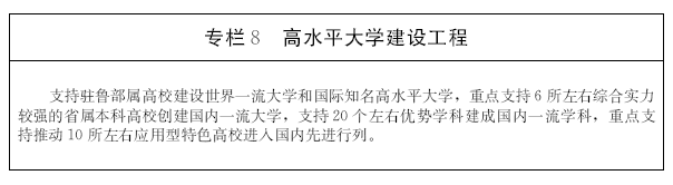 推动本科高校向应用型转变。推动省属本科高校融入区域经济社会发展,适应引领新产业、新业态发展,深化行业企业合作,建立紧密对接产业链、创新链的专业体系,创新产教融合、协同育人的人才培养模式,着力培养应用型人才。支持转型高校与国外应用技术类型高校开展合作。建立符合应用型高校特点的评估标准和制度。到2020年,建成一批支撑山东经济社会发展和产业转型升级的高水平应用型高校。2.优化高等教育结构。