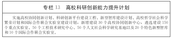 5.提升科研创新和社会服务能力。完善高校科技创新体系。建立服务国家和省重大发展战略,引领产业转型升级与技术进步,以创新为核心、协同为纽带的高校科技创新体系。创新科研组织方式,构建人才团队、科研项目、基地平台、成果转化协同推进的高校科技创新模式。搭建产学研合作平台,强化学科与行业产业对接,积极推进高校与科研院所、企业开展协同创新。加强新型高校智库建设,继续实施高校协同创新计划,统筹规划建设一批重点实验室、工程技术研究中心、协同创新中心和人文社科研究基地。组织和支持高校积极承接国家重大科研项目,聚焦重大科学和战略技术课题开展基础研究和技术攻关,全面提升高校科技创新能力。